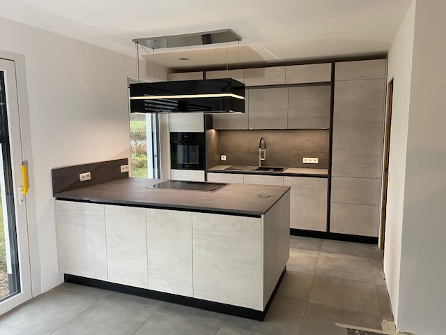 Ein modernes Design, perfekt angepasst an die Wünsche unserer Kunden. Funktionalität und Eleganz vereinen sich in dieser maßgeschneiderten Traumküche.